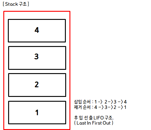 ์คํ ์์ญ์ ํ์ ์ ์ถ (Last In First Out)์ ๊ตฌ์กฐ๋ฅผ ๊ฐ์ง๋ ํน์ง์ด ์์ต๋๋ค.
