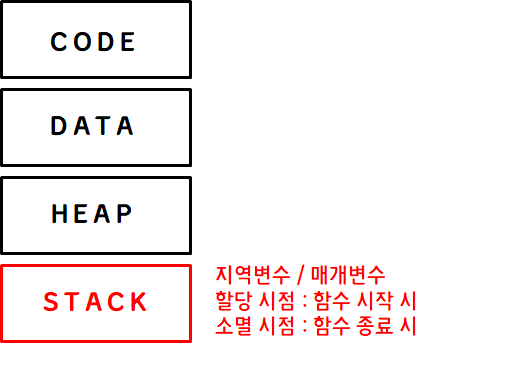 ์คํ ์์ญ์ ํจ์์ ์ง์ญ๋ณ์์ ๋งค๊ฐ๋ณ์๊ฐ ์ ์ฅ๋๋ ์์ญ์ ๋๋ค.