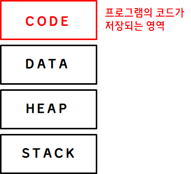 ์ฝ๋ ์์ญ์ ๋ง ๊ทธ๋๋ก ์คํํ๋ ํ๋ก๊ทธ๋จ์ ์ฝ๋๊ฐ ์ ์ฅ๋๋ ์์ญ์ ๋๋ค.