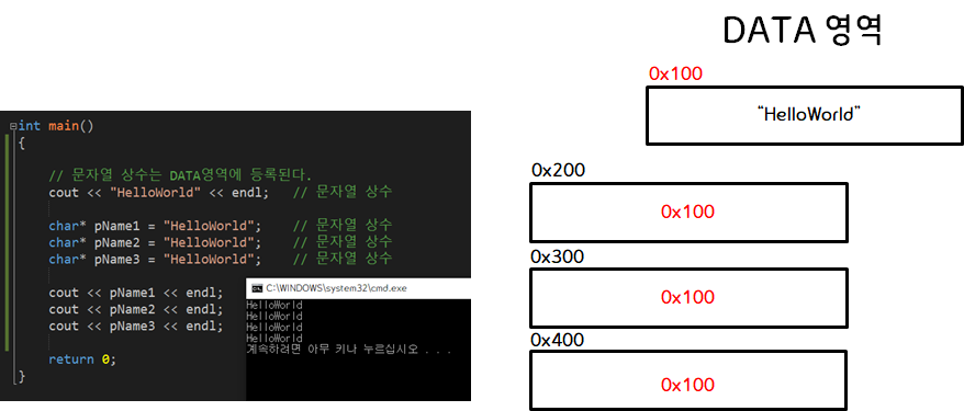 (๋ฌธ์์ด ์์๋ ํ๋ก๊ทธ๋จ์ด ์ฌ์ฉํ๋ ๋ฉ๋ชจ๋ฆฌ ์์ญ ์ค์์