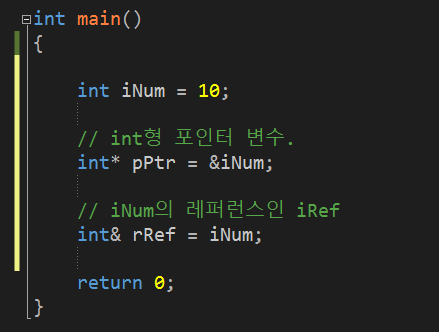 iNum๊ณผ rRef๋ ๋์ผํ ๋ฉ๋ชจ๋ฆฌ ๊ณต๊ฐ์ ์ฐธ์กฐํ๋ค.