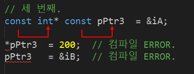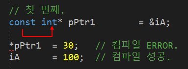 pPtr2๋ ์์ const ์ ์ธ์ผ๋ก ์ธํด ์์ํ๊ฐ ๋์๊ธฐ ๋๋ฌธ์,