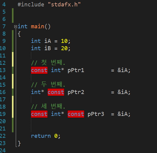 ์ฒซ ๋ฒ์งธ const ํค์๋์ ์์น์ ๋ด๊ธด ์๋ฏธ๋ ๋ค์๊ณผ ๊ฐ๋ค.