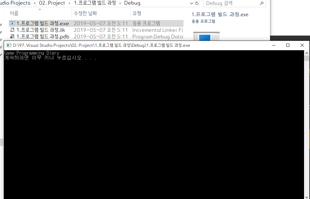 "1.ํ๋ก๊ทธ๋จ ๋น๋ ๊ณผ์ .exe" ํ์ผ์ด ์์ฑ๋ ๊ฒ์ ํ์ธํ ์ ์์ต๋๋ค.