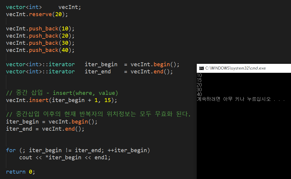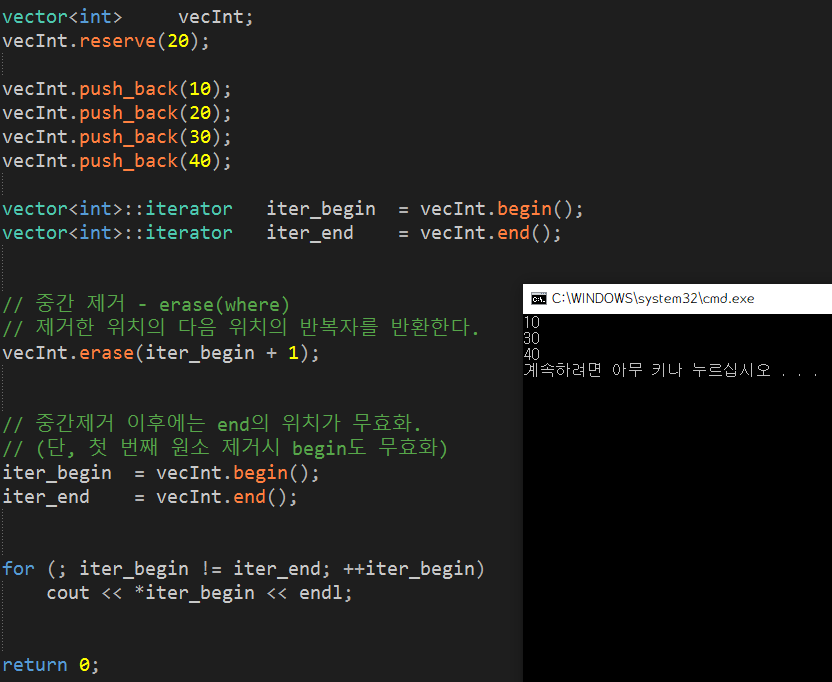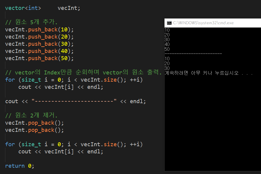 [ vector์ ์์ ์ฝ์ ๋ฐ ์ ๊ฑฐ ]
