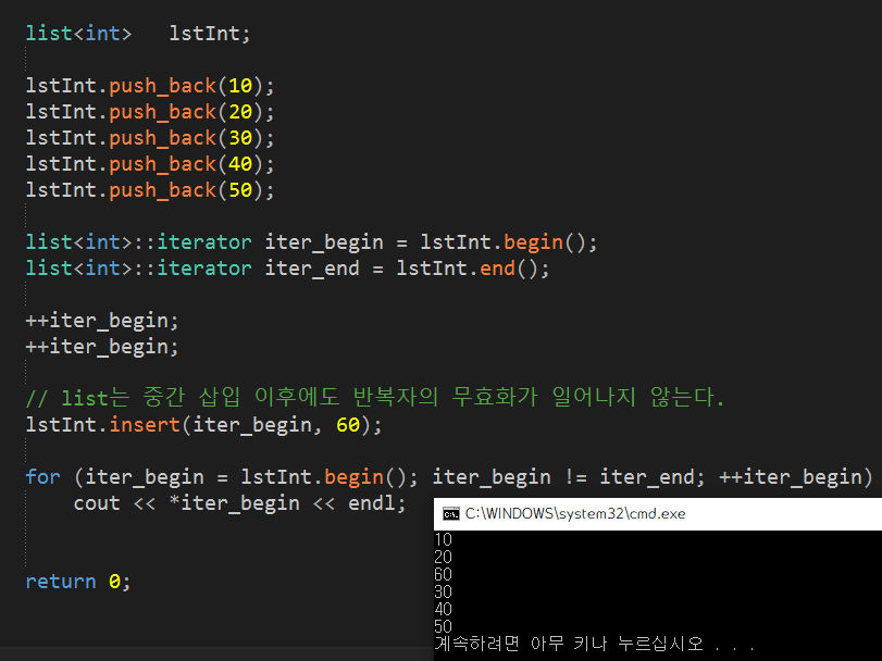 push_back : ๋ค์์ ๋ถํฐ ์์๋ฅผ ์ฝ์ ํ๋ค.