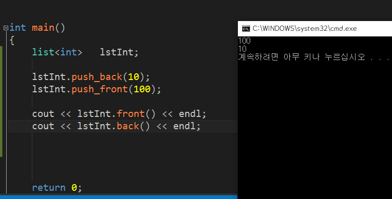 push_front : ์์์ ๋ถํฐ ์์๋ฅผ ์ฝ์ ํ๋ค.