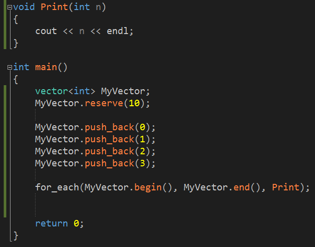 for_each(begin, end, function pointer or functor)