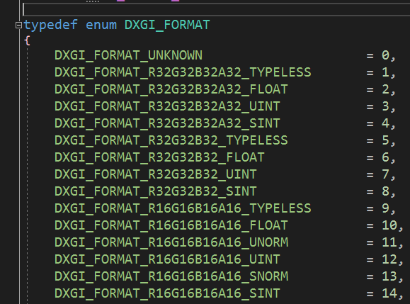 DXGI_FORMAT์ ๋ฆฌ์์ค์ ํ์์ ์ค์ ํ๋ ๊ฐ์ด๋ค.