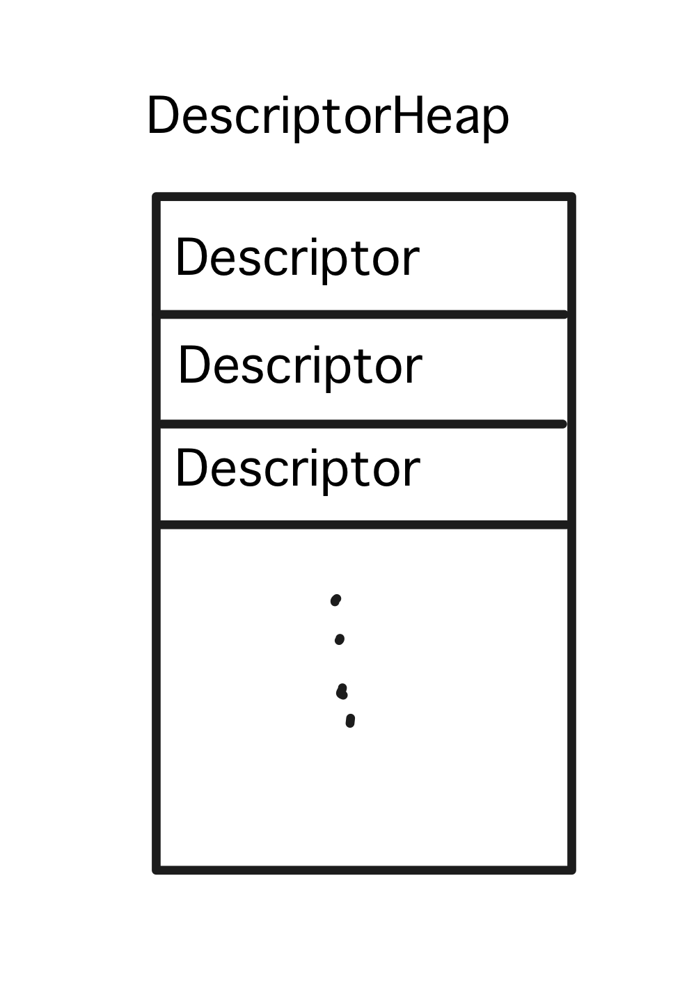 ์ด ํ ์ด๋ธ ํ๋ฅผ ์์ ์ ํ(Descriptor Heap)์ด๋ผ๋ ๋ฐฐ์ด์ด๋ผ ํ๋ค.