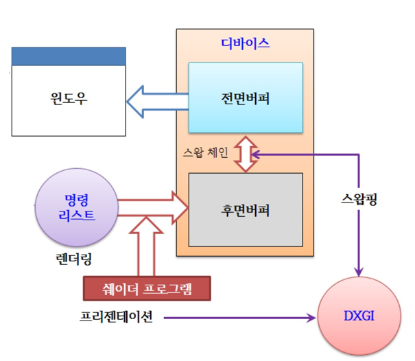 DirectX 11์์๋ ๊ทธ๋ํฝ์นด๋ ๋๋ผ์ด๋ฒ์์ ์์์ ๋ด๋ถ์ ์ธ ์ํ๋ฅผ ๊ด๋ฆฌํด์คฌ๋ค.