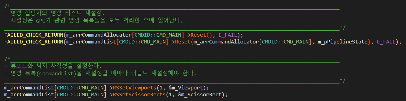 ๋ทฐํฌํธ์ ๋ง์ฐฌ๊ฐ์ง๋ก CommandList๊ฐ Reset()์ด ๋ ๋ ๋ค์ ์์ ์ฌ๊ฐํ์ ์ค์ ํด์ผ ํ๋ค.