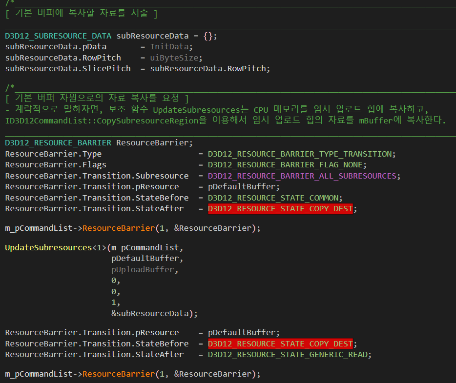 ๋ฆฌ์์ค ์ฅ๋ฒฝ์ ID3D12GraphicsCommandList::ResourceBarrier() ํจ์์