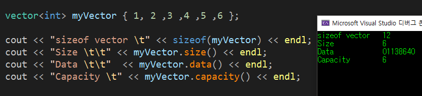 vector์ ์์๊ฐ ์๋ค๋ฉด Size, Data, Capacity๋ ๊ฐ์ ๊ฐ์ง๊ฒ ๋๋ค.