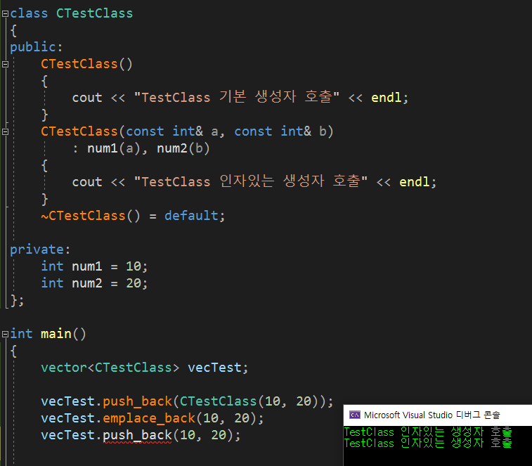 3. push_back ํจ์ ์์์ ๋ง๋ค์ด์ง ์์๊ฐ์ฒด๋ฅผ vector์ ์ถ๊ฐํ๋ค.