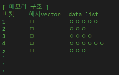 ํด์๊ฐ์ ๋ฏธ๋ฆฌ ๋ด๋ถ์ vector๋ก ๋ง๋ค์ด ๋๋๋ค. (๋ฒํท์ ๋ง๋ค์ด ๋๋๋ค.)