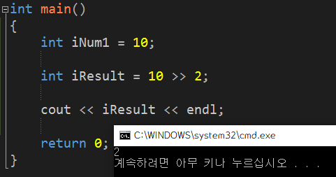 ์๋ฅผ ๋ค์ด 10 << 2๋