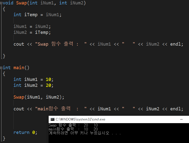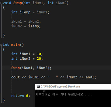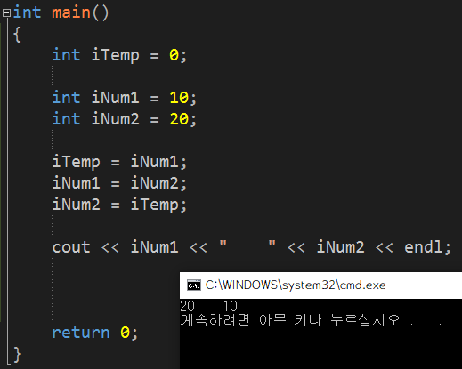 ์ฐ์ , ํจ์ ์ฌ์ฉ ์์ด Swap์ ํด๋ณด๊ฒ ์ต๋๋ค.