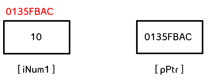 'intํ ํฌ์ธํฐ ๋ณ์ pPtr์ iNum1์ ์ฃผ์๋ฅผ ๋์ ํ๊ฒ ๋ค'.