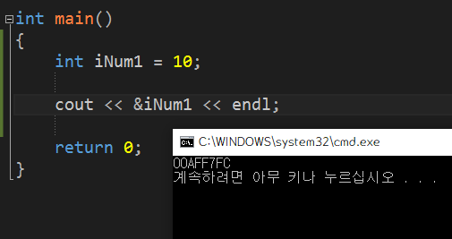 'pPtr์ iNum1์ ์ฃผ์๋ฅผ ์ ์ฅํ๊ฒ ๋ค'