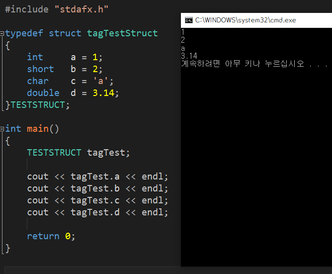 struct ํค์๋ ์ดํ ์ค๊ดํธ ์์ ์์ ์ด ์ฌ์ฉํ๋ ์๋ฃ๋ค์ ๋ฃ์ด์ฃผ๋ฉด ๋ฉ๋๋ค.