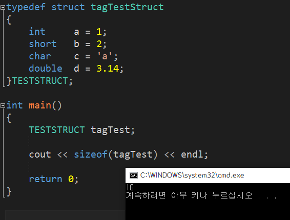 ๊ตฌ์กฐ์ฒด์ ์ ์๋ ์์๋๋ก ํ ๋น์ ํด๋ณด๋ฉด